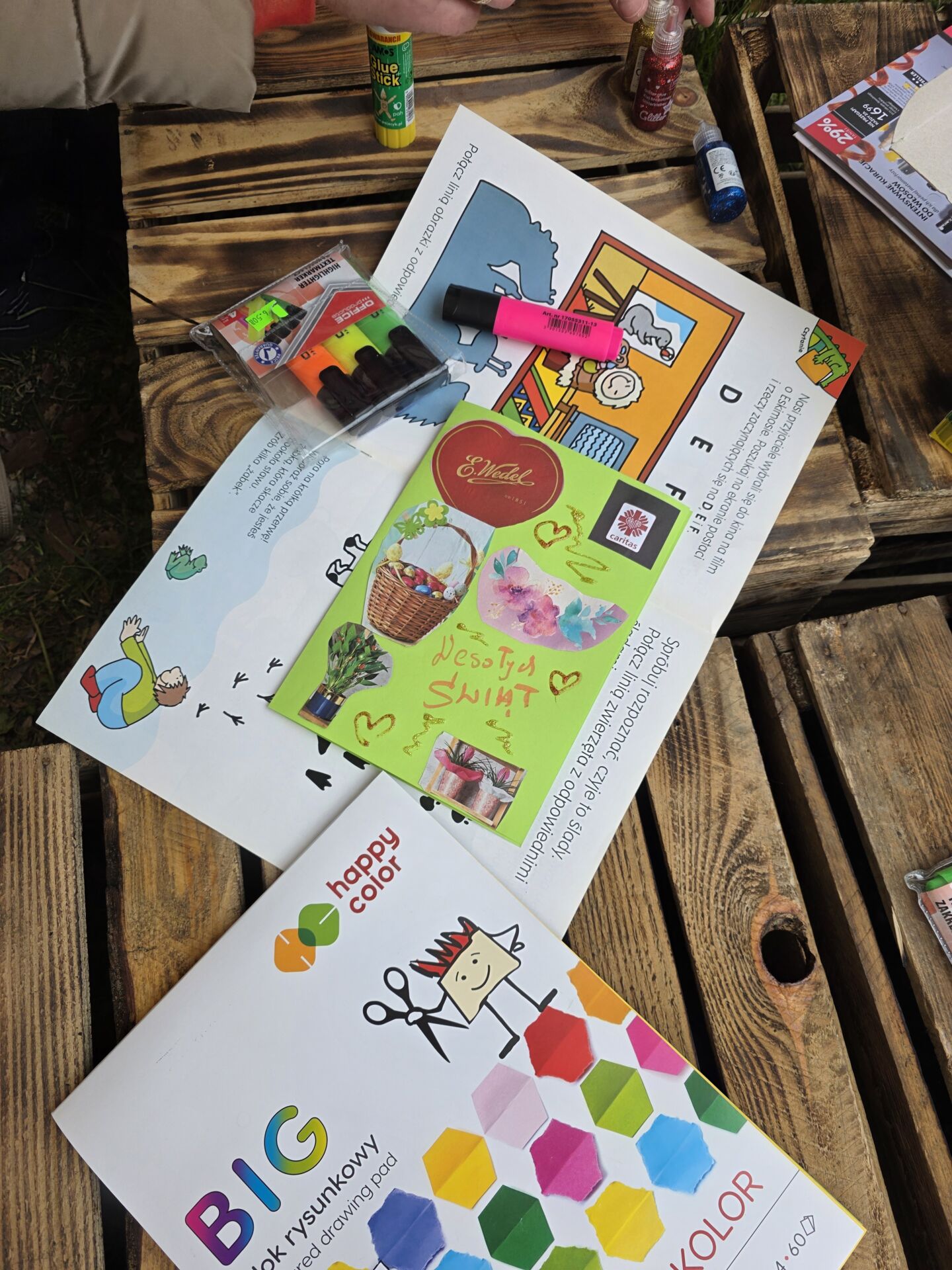 Młodzi podczas warsztatu przygotowali pocztówki dla pacjentów hospicjum i seniorów objętych opieką Caritas. Wszystkie kartki trafią do miejsc, gdzie Caritas każdego dnia niesie pomoc potrzebującym jako prosty i piękny gest solidarności oraz troski o drugiego człowieka.